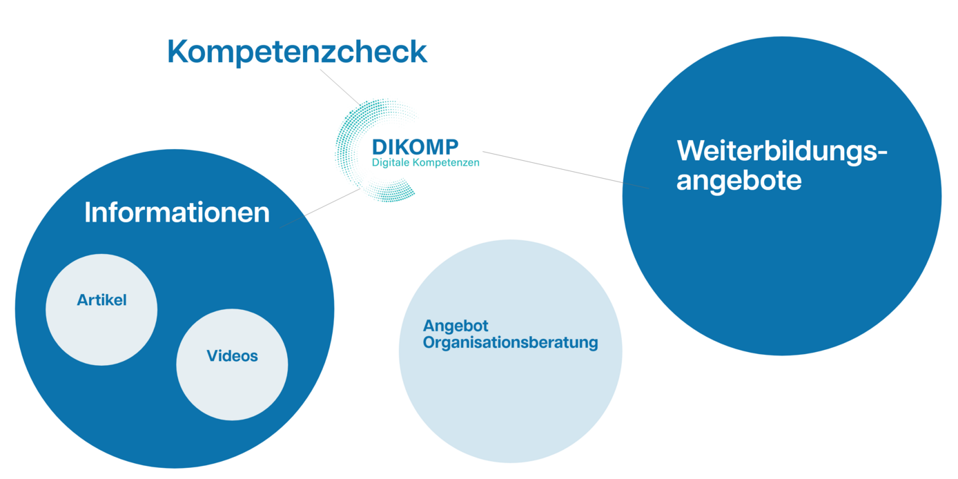 Das DIKOMP-Portal umfasst die Unterstützungsangebote Information, Kompetenzdiagnose und Beratung sowie Weiterbildung.
